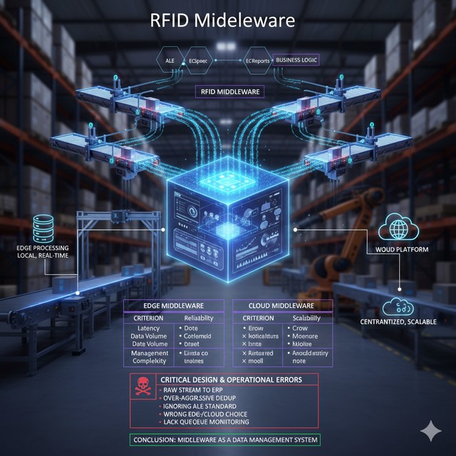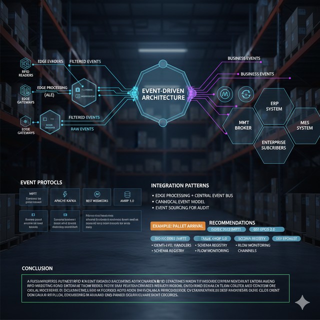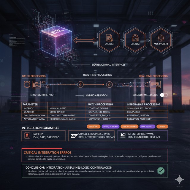 An architectural anti-pattern is creating a separate "RFID island" with manual data export. The correct approach is designing an event-driven interface, where each read event is transformed into a standard business message (e.g., via MQTT or REST webhook), which can be consumed by multiple subscriber systems. This increases fault tolerance and simplifies future modernization.