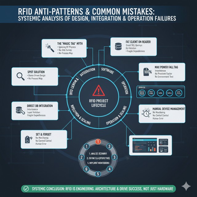 The reliability of an RFID system in industrial conditions is often determined not by tag characteristics but by the quality of integration with existing infrastructure: ERP, WMS, SCADA, mechanical systems.
